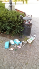 W najważniejszych punktach miasta z koszy wręcz wylewają się śmieci. Widać, że nie były opróżniane przez wiele dni.
