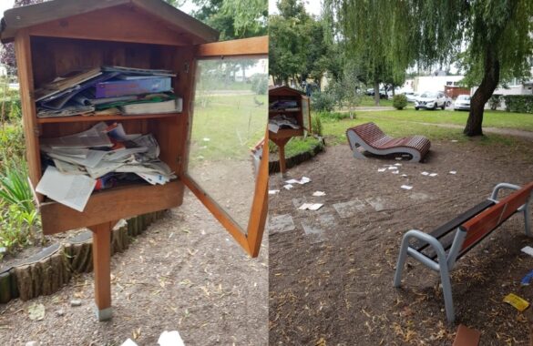 Nasz czytelnik zauważył, że ktoś zniszczył i porozrzucał książki w tym urokliwym miejscu. „Poczytelnia” to niezwykłe miejsce na terenie osiedla przy ulicy Mickiewicza w Wągrowcu. Na skwerku pomiędzy blokami pośród drzew jest miejsce, gdzie można zostawić książki dla innych miłośników literatury lub samemu usiąść tam i oddać się czytaniu. Niestety, … Czytaj dalej ALE WSTYD: Wandale znów zniszczyli „poczytelnię”! [FOTO]