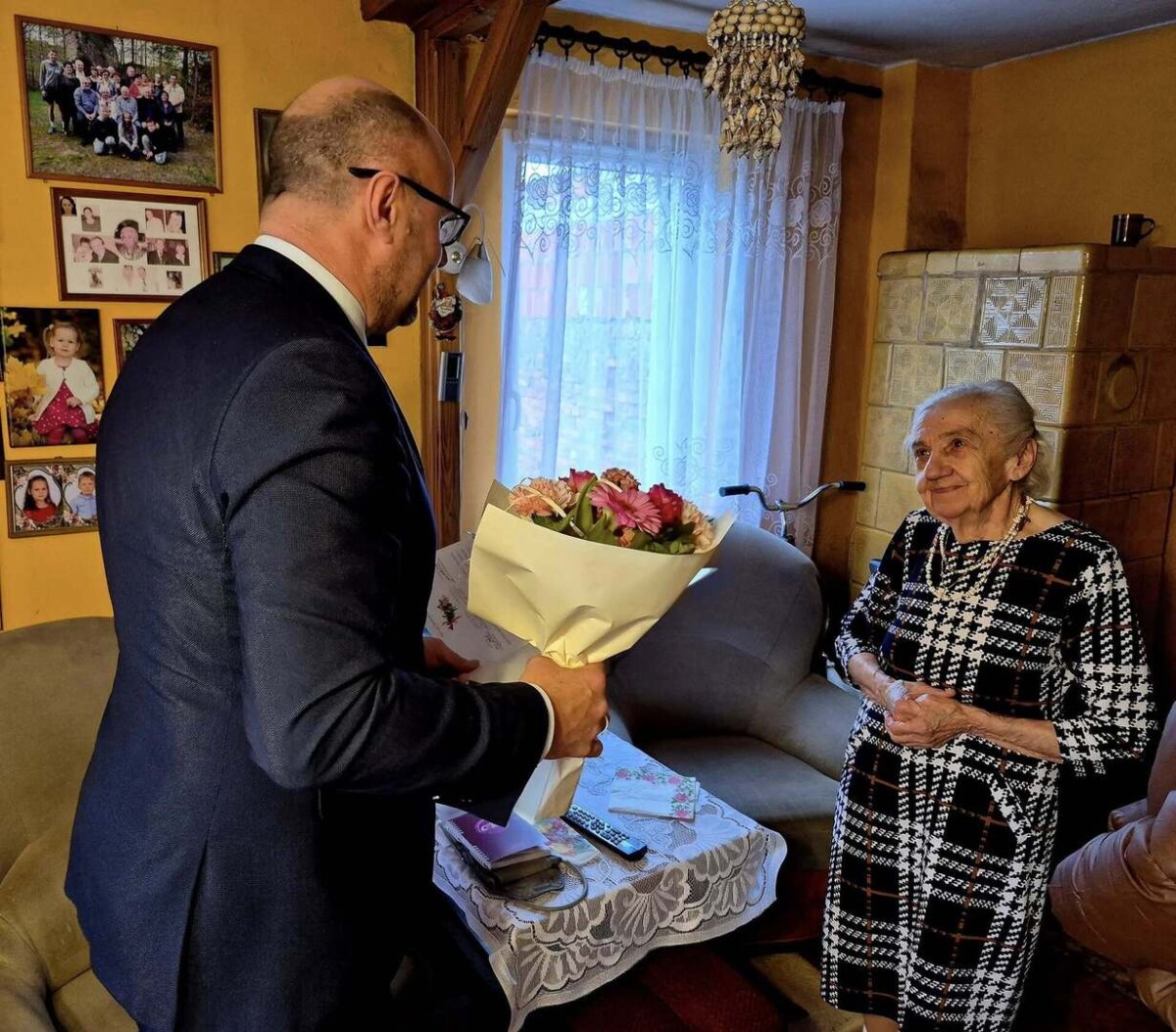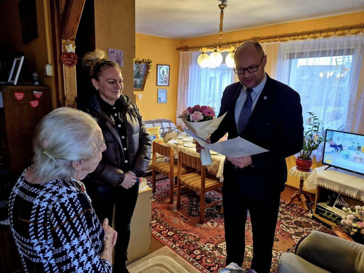 – Dziewięć dekad życia to piękny czas, wypełniony doświadczeniem, mądrością i wspomnieniami, które stanowią skarb nie tylko dla każdej rodziny, lecz także dla całej naszej lokalnej wspólnoty – mówił burmistrz, który w imieniu własnym oraz pracowników urzędu przekazał jubilatce bukiet kwiatów i list gratulacyjny.