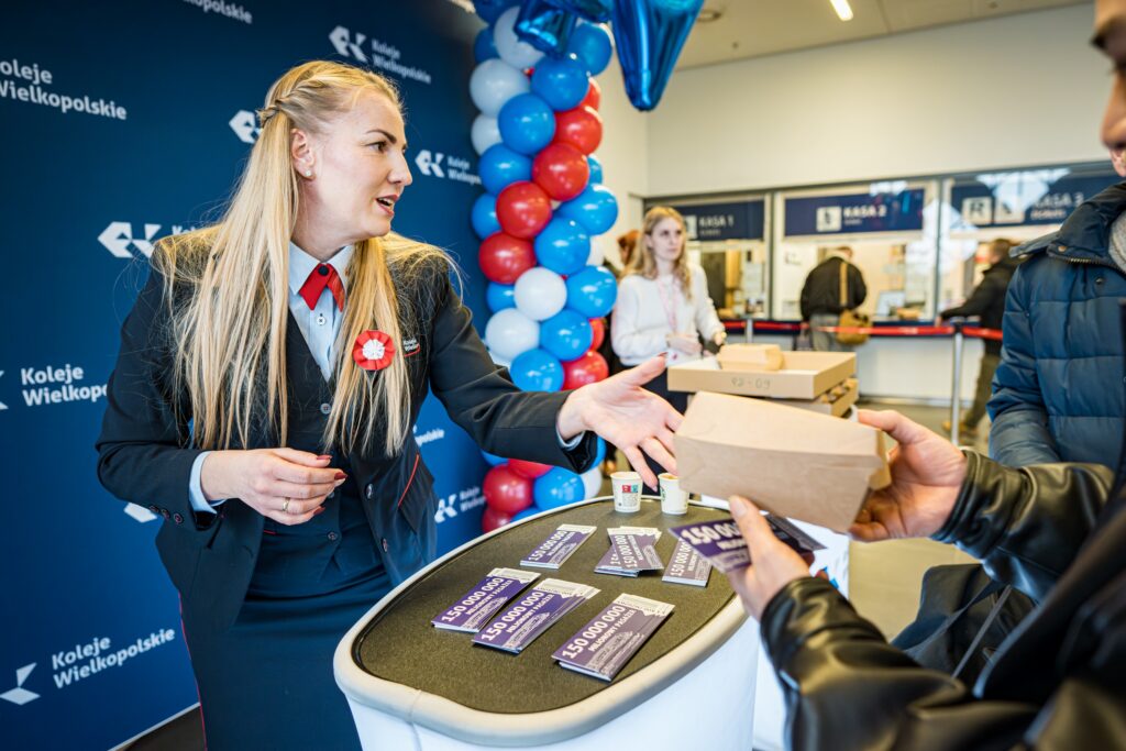 Po oficjalnej części konferencji – Wojciech Jankowiak, Wicemarszałek Województwa Wielkopolskiego, Robert Pilarczyk, Dyrektor Departamentu Transportu Urzędu Marszałkowskiego Województwa Wielkopolskiego oraz Zarząd spółki Koleje Wielkopolskie udali się na peron pierwszy. Tam na podróżnych czekał udekorowany skład pociągu. Na pokładzie pasażerowie otrzymywali vouchery oraz słodki poczęstunek. Atmosfera szybko przerodziła się w prawdziwe święto. – Chcieliśmy, aby ten dzień był radosny i zapamiętany jako symbol wspólnego sukcesu. Kolej to nie tylko infrastruktura i tabor – to przede wszystkim ludzie, pasażerowie – zaznaczył Wojciech Jankowiak, Wicemarszałek.