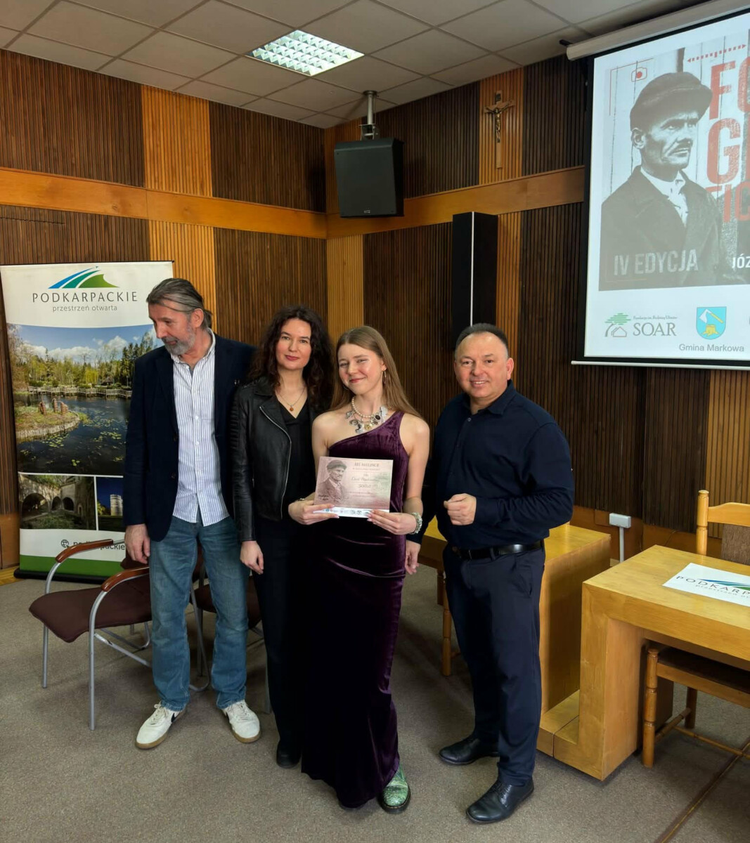 To właśnie podczas tej uroczystości Liwia dowiedziała się, że uhonorowano ją III nagrodą w kategorii „portret” (zdjęcie możecie zobaczyć w poście, przedstawia ono rodzinę Tyszkiewiczów, a zrobione zostało na szkolnym strychu). Ale to nie wszystkie radosne wiadomości. Nagrodę specjalną otrzymała bowiem fotografia innego uczestnika konkursu, na której Liwia pojawiła się jako… modelka (zdjęcie zostało zatytułowane „Modlitwa”). Dla szkolnej społeczności to bez wątpienia wielka radość. Teraz już cały kraj będzie wiedział, że w naszych murach uczy się tak zdolna młoda artystka.
