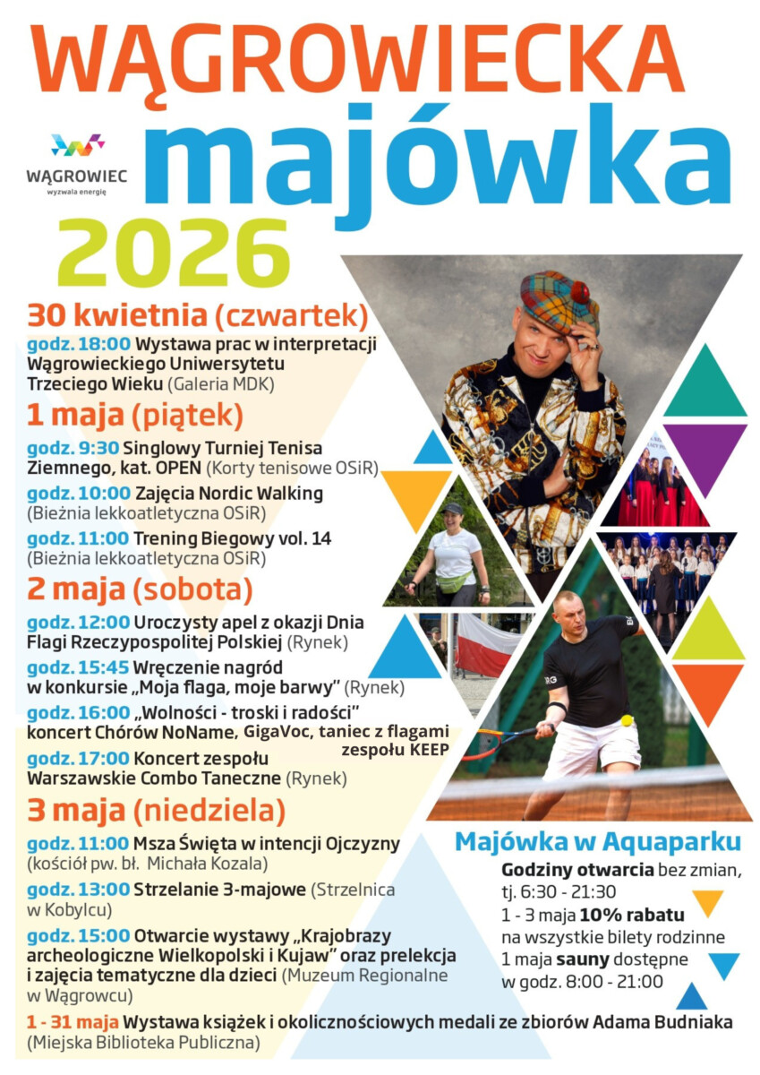 Dzień Flagi Rzeczypospolitej Polskiej (2 maja) będzie centralnym punktem obchodów na wągrowieckim Rynku. Uroczystości rozpoczną się o godzinie 12:00 uroczystym apelem. Popołudnie wypełni muzyka i rozstrzygnięcia konkursowe: