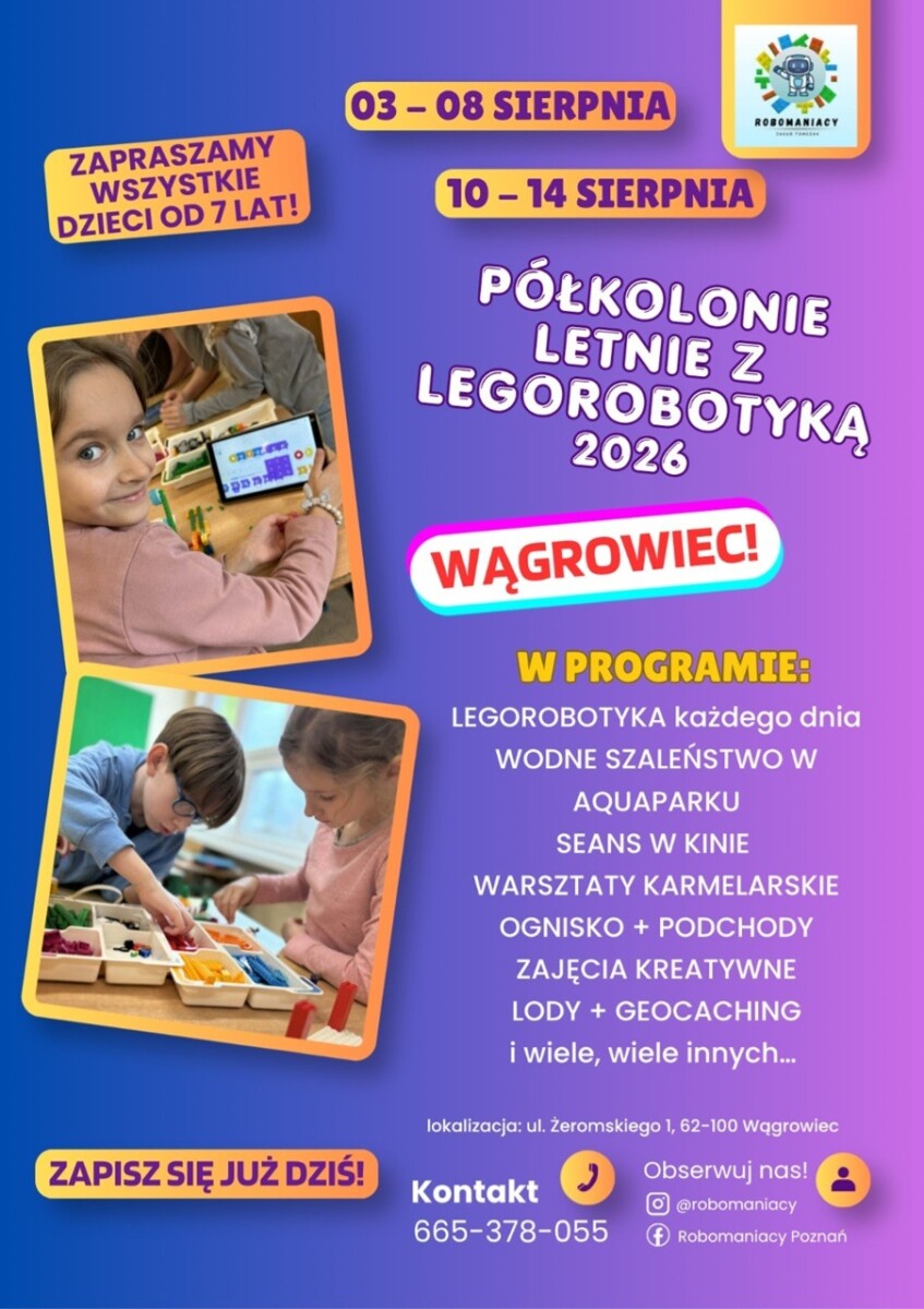 Mieszkańcy Wągrowca zyskali nową, unikalną ofertę letniego wypoczynku dla dzieci. Półkolonie z legorobotyki, organizowane przez grupę Robomaniacy Poznań, to nowość na lokalnym rynku, łącząca naukę programowania z aktywnym wypoczynkiem.