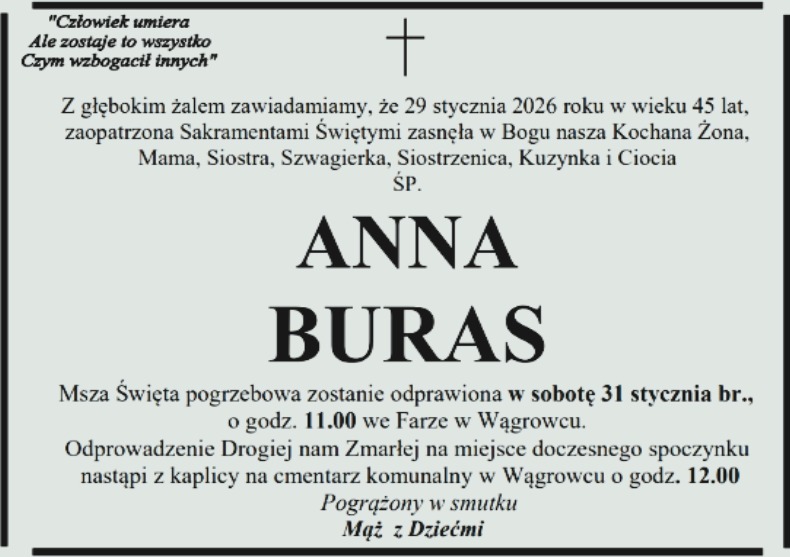 OSTATNIE POŻEGNANIE: Odeszła od nas Anna Buras