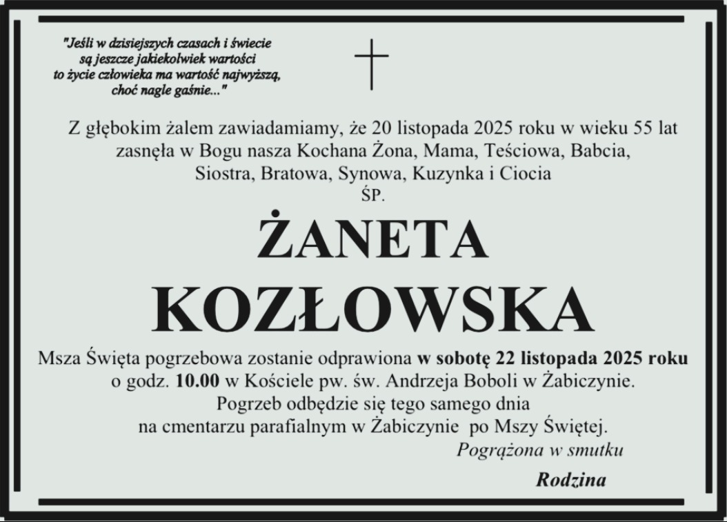 OSTATNIE POŻEGNANIE: Odeszła od nas Żaneta Kozłowska