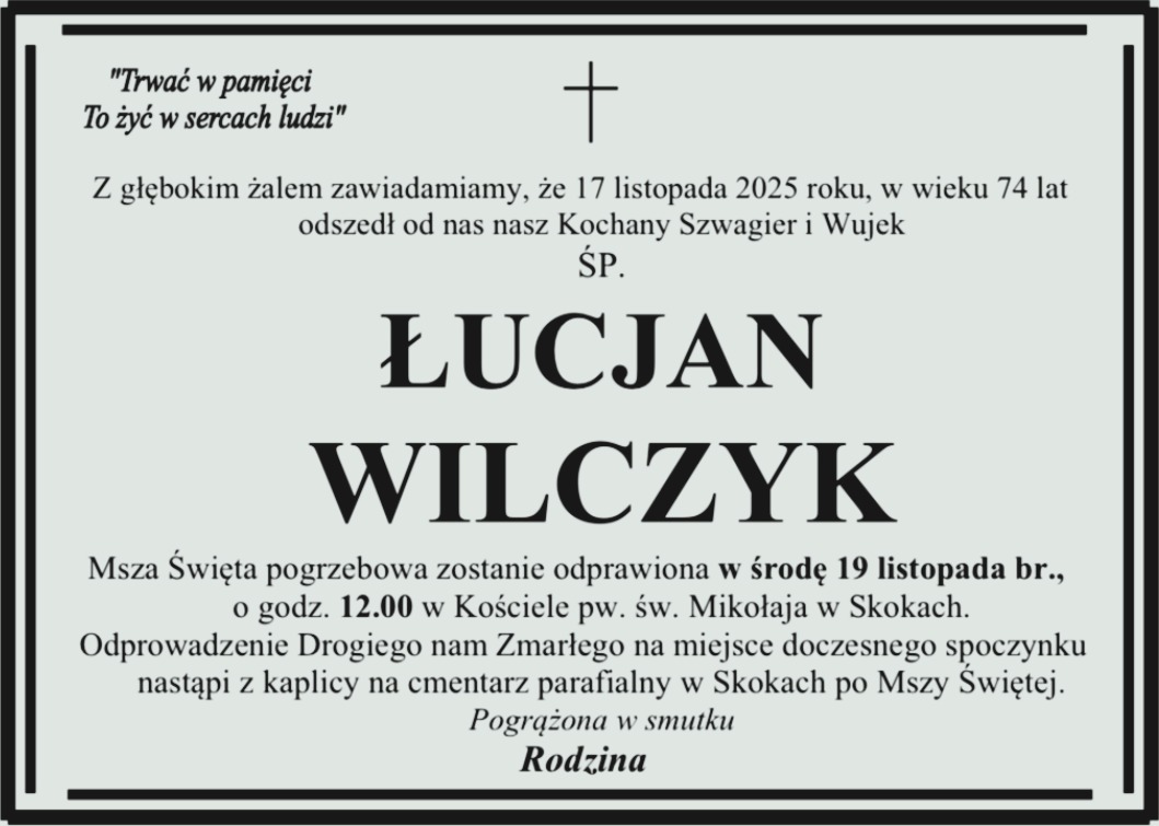 Pogrzeb pana Zbigniewa odbędzie się w czwartek 29 grudnia na cmentarzu parafialnym w Skokach.