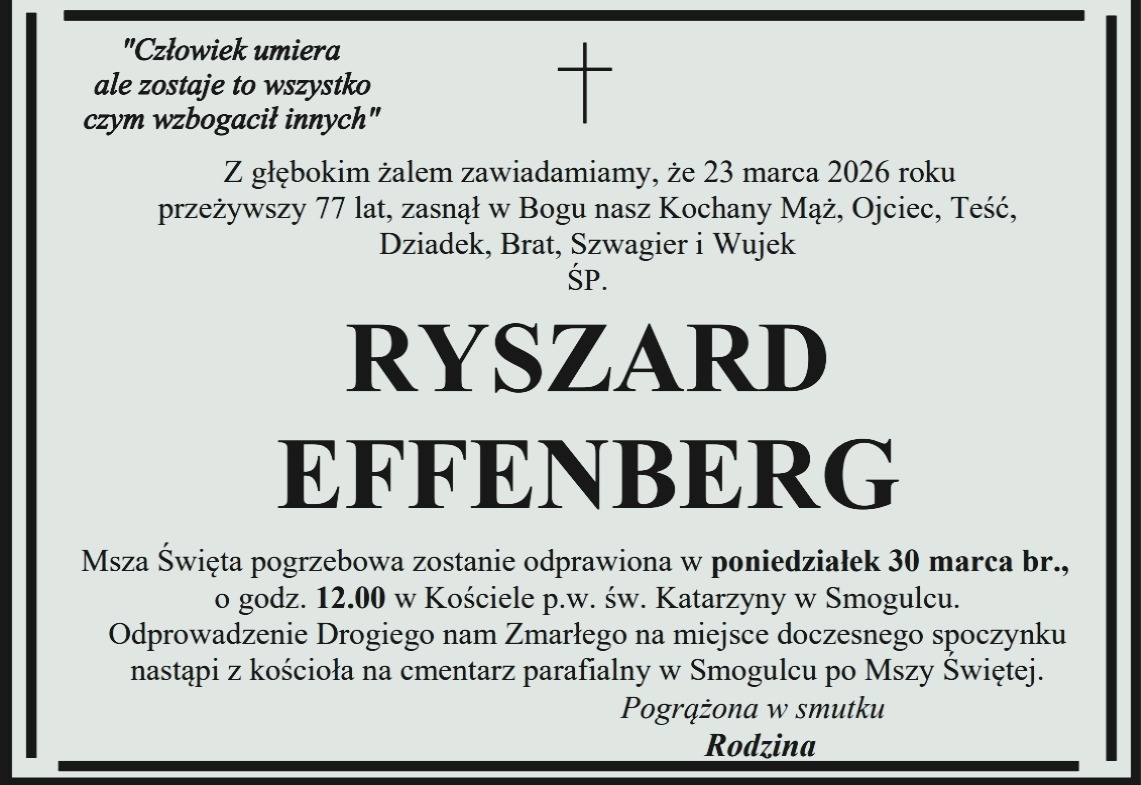 Pogrzeb pana Ryszarda odbędzie się w piątek 24 lutego na cmentarzu komunalnym Wągrowcu.