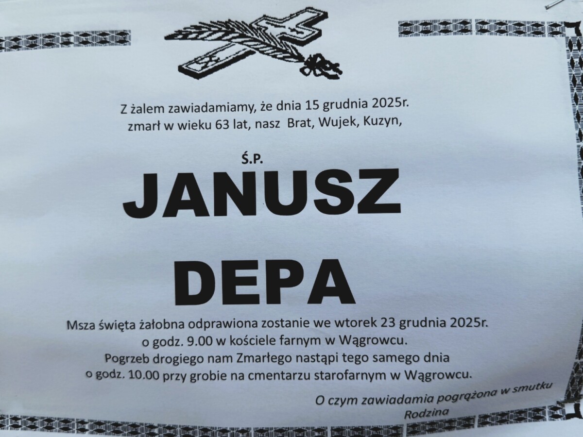 Pogrzeb pana Janusza odbędzie się 12 listopada na cmentarzu nowofarnym w Wągrowcu.