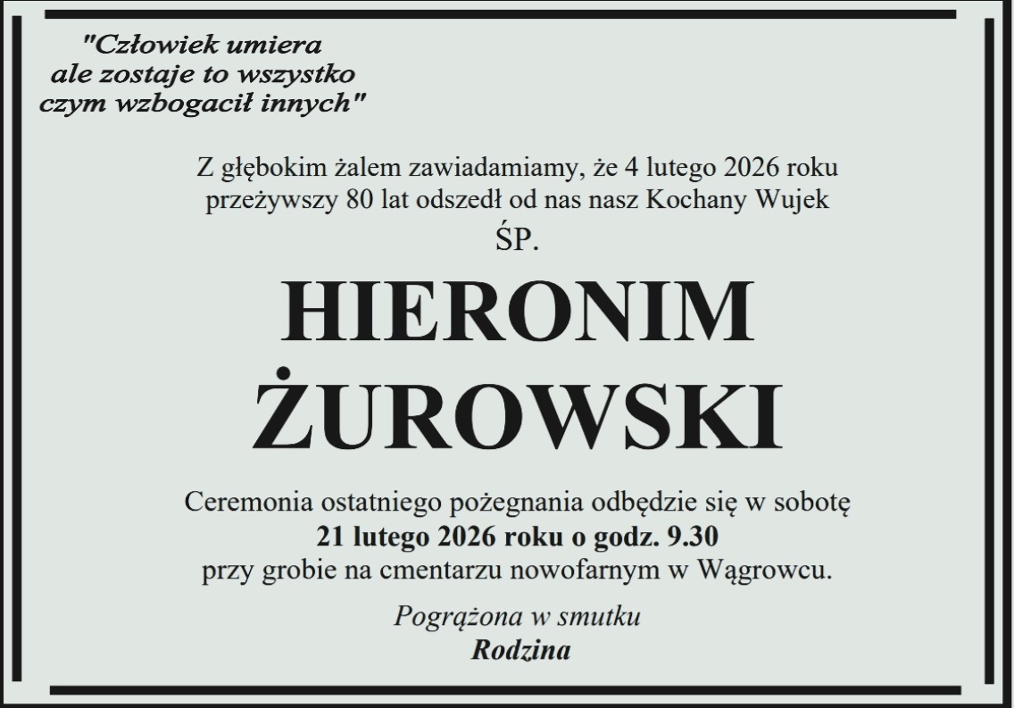 Pogrzeb pana Jerzego odbędzie się w środę 15 lutego na cmentarzu komunalnym Wągrowcu.