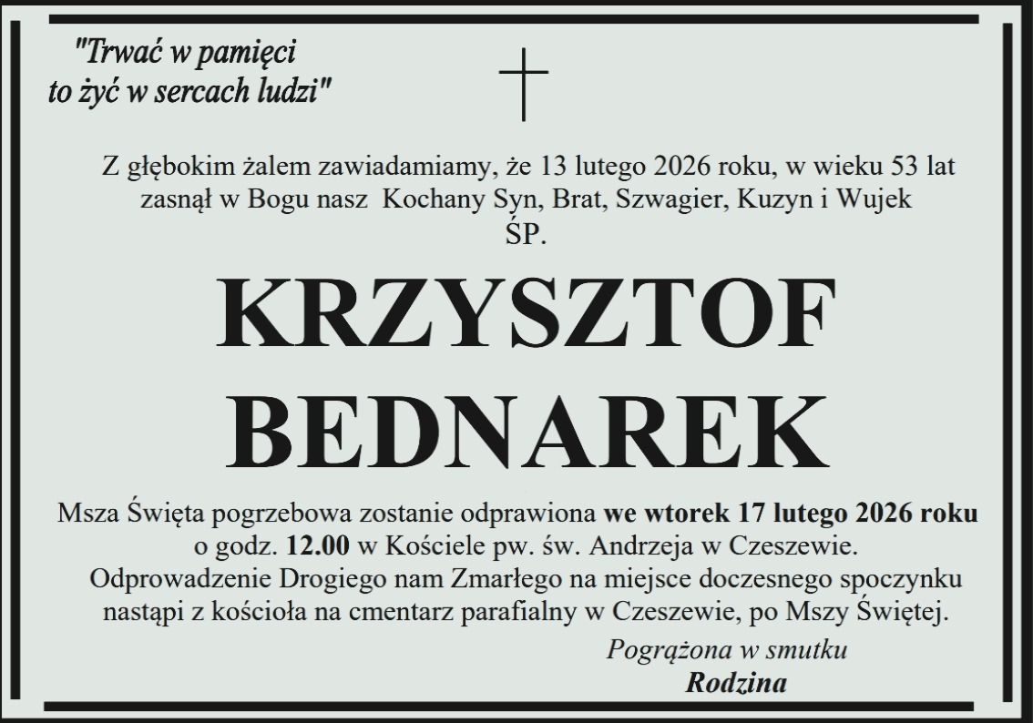 Pogrzeb pana Krzysztofa odbędzie się w sobotę 17 grudnia na cmentarzu nowofarnym w Wągrowcu.