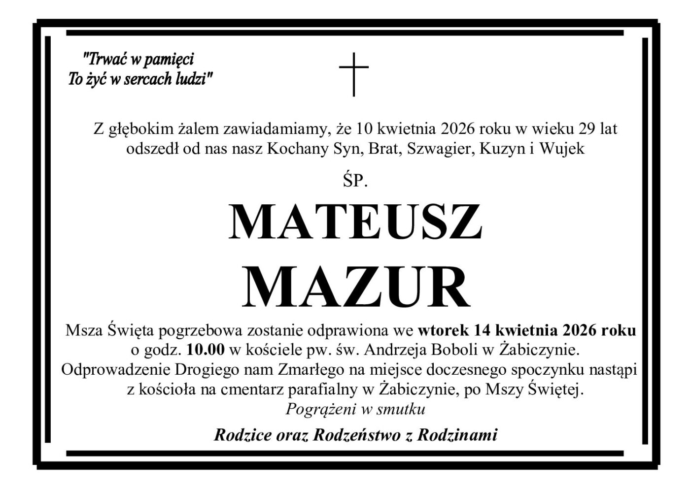 Pogrzeb pana Krystiana odbędzie się w sobotę 28 stycznia na cmentarzu parafialnym w Grylewie.
