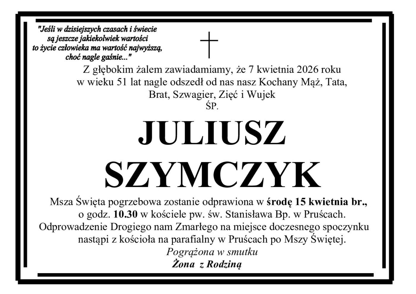 Pogrzeb pana Jerzego odbędzie się w sobotę 26 kwietnia na cmentarzu komunalnym w Wągrowcu.