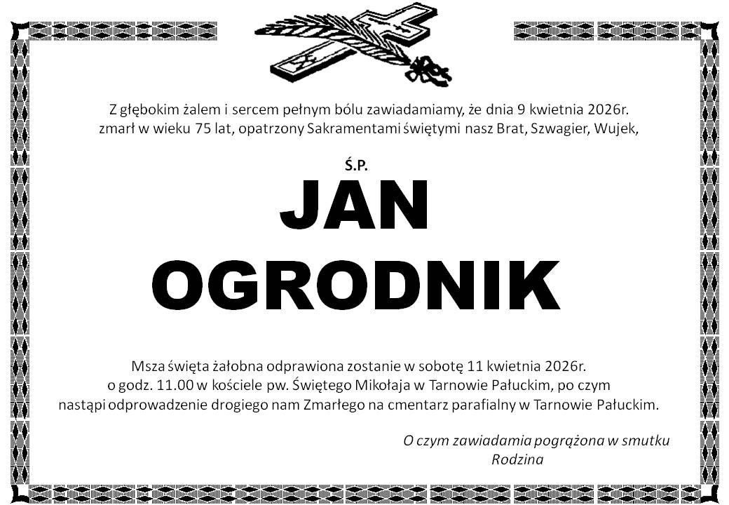 Pogrzeb pana Jana odbędzie się we wtorek 13 grudnia na cmentarzu nowofarnym w Wągrowcu.