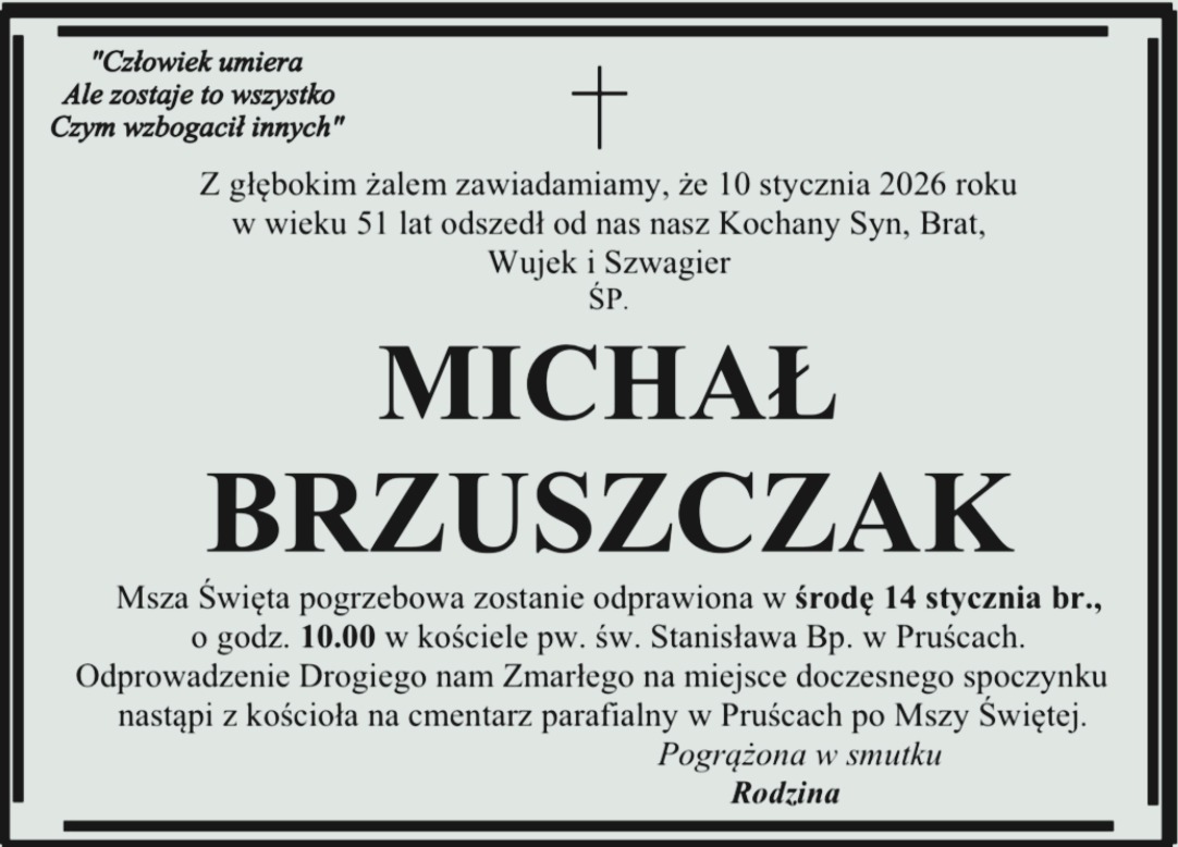 Pogrzeb pana Michała odbędzie się w czwartek 24 listopada na cmentarzu starofarnym w Wągrowcu.