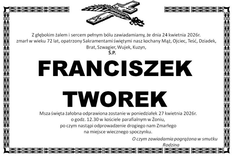 Pogrzeb pana Zbigniewa odbędzie się w czwartek 29 grudnia na cmentarzu parafialnym w Skokach.