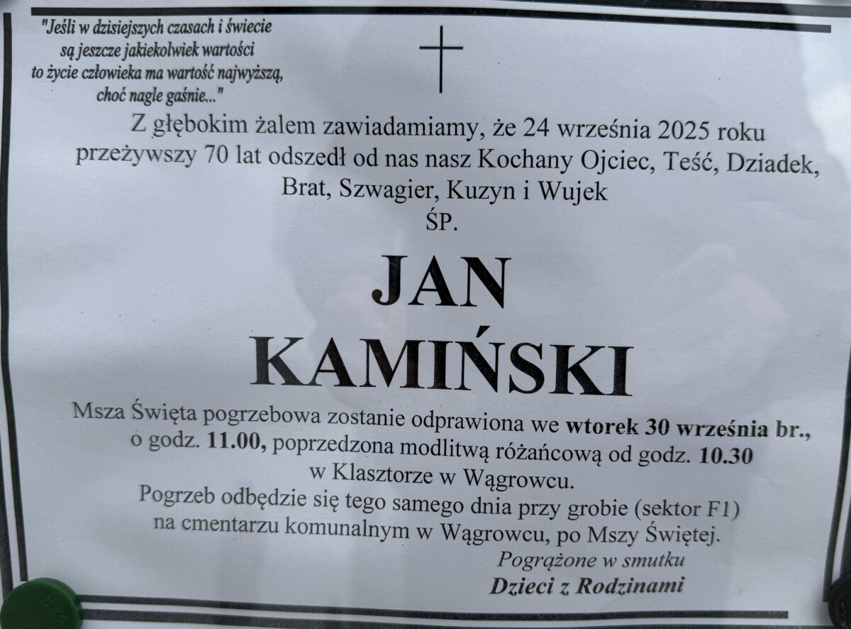 OSTATNIE POŻEGNANIE: Odszedł od nas Jan Kamiński
