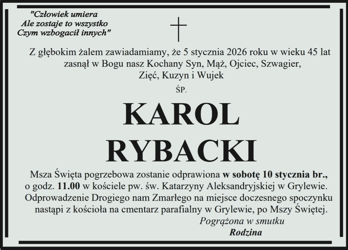 Pogrzeb pana Krystiana odbędzie się w sobotę 28 stycznia na cmentarzu parafialnym w Grylewie.