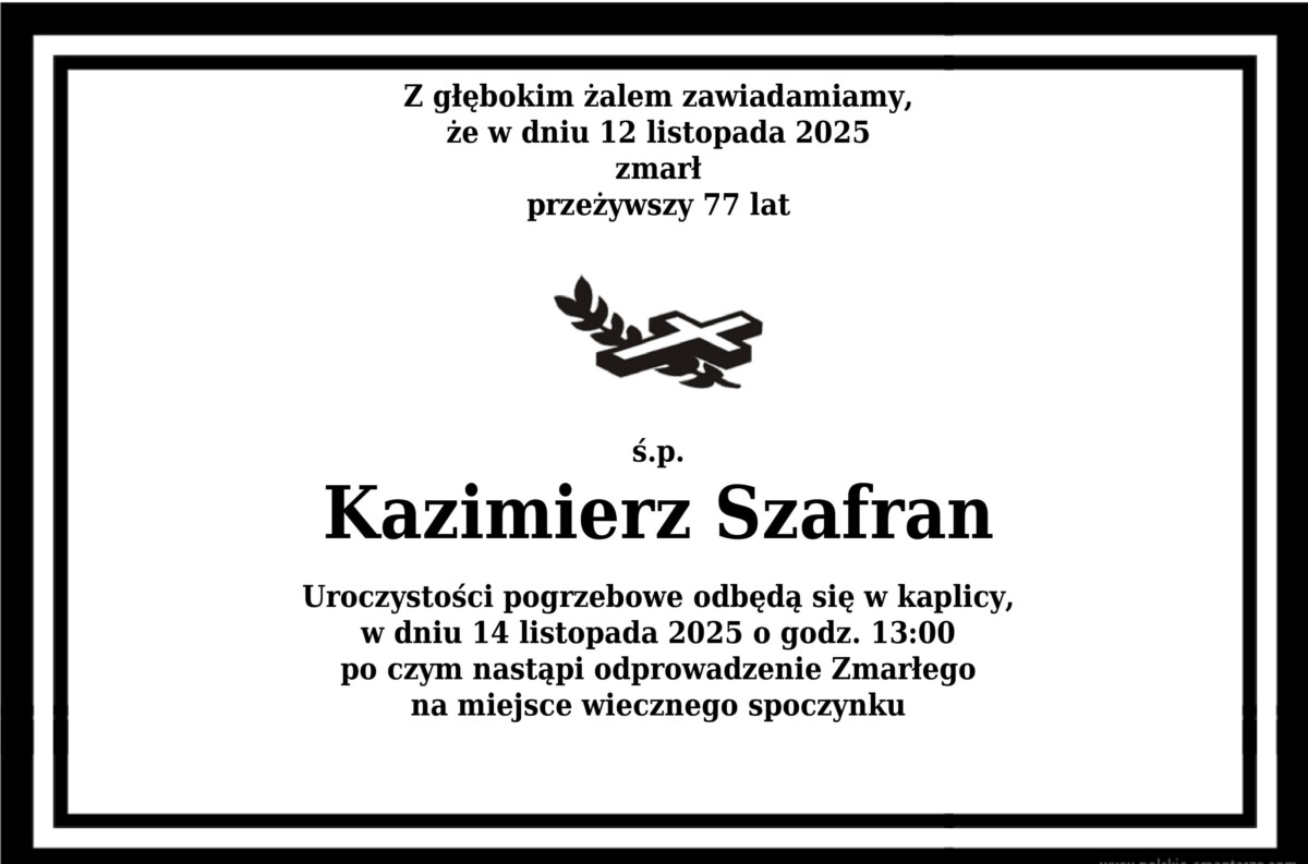 Pogrzeb pani Marii odbędzie się w czwartek 30 marca na cmentarzu komunalnym w Wągrowcu.Pogrzeb pana Marka odbędzie się w piątek 31 marca na cmentarzu komunalnym w Wągrowcu.Pogrzeb pani Małgorzaty odbędzie się we wtorek 28 marca na cmentarzu parafialnym w Popowie Kościelnym.Pogrzeb pani Teresy odbędzie się we wtorek 28 marca na cmentarzu komunalnym w Wągrowcu.Pogrzeb pani Teresy odbędzie się w środę 29 marca na cmentarzu nowofarnym w Wągrowcu.Pogrzeb pani Edwiny odbędzie się w sobotę 25 marca na cmentarzu parafialnym w Żoniu.Pogrzeb pana Stanisława odbędzie się w sobotę 25 marca na cmentarzu nowofarnym w Wągrowcu.Pogrzeb pani Janiny odbędzie się w środę 22 marca na cmentarzu komunalnym w Wągrowcu.Pogrzeb pani Teresy odbędzie się w piątek 24 marca na cmentarzu nowofarnym w Wągrowcu.Pogrzeb pana Henryka odbędzie się we wtorek 21 marca na cmentarzu komunalnym w Wągrowcu.Pogrzeb pani Barbary odbędzie się w piątek 17 marca na cmentarzu nowofarnym w Wągrowcu.Pogrzeb pani Czesławy odbędzie się we wtorek 14 marca na cmentarzu nowofarnym w Wągrowcu.Pogrzeb pana Zygmunta odbędzie się w środę 15 marca na cmentarzu komunalnym w Wągrowcu.Pogrzeb pana Mirosława odbędzie się w piątek 17 marca na cmentarzu komunalnym w Wągrowcu.Pogrzeb pana Joachima odbędzie się we wtorek 14 marca na cmentarzu komunalnym w Wągrowcu.Pogrzeb pana Grzegorza odbędzie się w środę 15 marca na cmentarzu nowofarnym w Wągrowcu.Pogrzeb pana Hieronima odbędzie się we wtorek 14 marca na cmentarzu parafialnym w Skokach.Pogrzeb pani Margarity odbędzie się w poniedziałek 13 marca na cmentarzu nowofarnym w Wągrowcu.Pogrzeb pani Wiesławy odbędzie się w sobotę 11 marca na cmentarzu starofarnym w Wągrowcu.Pogrzeb pani Barbary odbędzie się w czwartek 9 marca na cmentarzu nowofarnym w Wągrowcu.Pogrzeb pani Władysławy odbędzie się w sobotę 11 marca na cmentarzu nowofarnym w Wągrowcu.Pogrzeb pana Piotra odbędzie się w środę 8 marca na cmentarzu komunalnym w Wągrowcu.Pogrzeb pani Aleksandry odbył się we wtorek 7 marca na cmentarzu nowofarnym w Wągrowcu.Pogrzeb pani Danieli odbędzie się w sobotę 11 marca na cmentarzu nowofarnym w Wągrowcu.Pogrzeb pana Pawła odbędzie się w piątek 3 marca na cmentarzu parafialnym w Skokach.Pogrzeb pani Heleny odbędzie się w sobotę 4 marca na cmentarzu starofarnym w Wągrowcu.Pogrzeb pana Kazimierza odbędzie się w sobotę 4 marca na cmentarzu parafialnym w Skokach.Pogrzeb pana Mieczysława odbył się w środę 1 marca na cmentarzu klasztornym w Wągrowcu.Pogrzeb pani Ewy odbędzie się w środę 1 marca na cmentarzu parafialnym w Skokach.Pogrzeb pani Józefy odbędzie się w środę 1 marca na cmentarzu parafialnym w Lechlinie.Pogrzeb pani Władysławy odbędzie się w środę 1 marca na cmentarzu nowofarnym Wągrowcu.Pogrzeb pani Aliny odbędzie się we wtorek 28 lutego na cmentarzu komunalnym Wągrowcu.Pogrzeb pani Krystyny odbędzie się w środę 1 marca na cmentarzu komunalnym Wągrowcu.Pogrzeb pana Bernarda odbędzie się we wtorek 28 lutego na cmentarzu starofarnym Wągrowcu.Pogrzeb pani Zofii odbędzie się we wtorek 28 lutego na cmentarzu nowofarnym w Wągrowcu.Pogrzeb pana Ryszarda odbędzie się w piątek 24 lutego na cmentarzu komunalnym Wągrowcu.Pogrzeb pani Anny odbędzie się w czwartek 23 lutego na cmentarzu nowofarnym Wągrowcu.Pogrzeb pani Barbary odbędzie się w czwartek 23 lutego na cmentarzu nowofarnym Wągrowcu.Pogrzeb pani Ireny odbędzie się w czwartek 23 lutego na cmentarzu nowofarnym Wągrowcu.Pogrzeb pani Czesławy odbędzie się we wtorek 21 lutego na cmentarzu nowofarnym Wągrowcu.Pogrzeb pana Andrzeja odbędzie się w sobotę 18 lutego na cmentarzu nowofarnym Wągrowcu.Pogrzeb pana Czesław odbędzie się w poniedziałek 20 lutego na cmentarzu starofarnym Wągrowcu.Pan Zenon przed laty mieszkał w Wągrowcu. W latach 90-tych wyjechał do USA, ale wciąż ma u nas bliskich i znajomych, z którymi wciąż utrzymywał kontakt. Jego bliskim bardzo zależało, aby poinformować o jego odejściu. Pogrzeb odbędzie się dzisiaj w Nowym Jorku. Pogrzeb pana Tadeusza odbędzie się w piątek 17 lutego na cmentarzu nowofarnym Wągrowcu.Pogrzeb pana Krzysztofa odbył się we wtorek 14 lutego na cmentarzu komunalnym Wągrowcu.Pogrzeb pani Haliny odbędzie się w środę 15 lutego na cmentarzu parafialnym w Czeszewie.Pogrzeb pana Jerzego odbędzie się w środę 15 lutego na cmentarzu komunalnym Wągrowcu.Pogrzeb pana Lechosława odbędzie się we wtorek 114 lutego na cmentarzu parafialnym w Gołańczy.Pogrzeb pani Danuty odbędzie się w sobotę 11 lutego na cmentarzu parafialnym w Lechlinie.Pogrzeb pana Jana odbędzie się w sobotę 11 lutego na cmentarzu komunalnym w Wągrowcu.Pogrzeb pana Kazimierza odbędzie się w środę 8 lutego na cmentarzu nowofarnym w Wągrowcu.Pogrzeb pani Haliny we wtorek 7 lutego na cmentarzu nowofarnym w Wągrowcu.Pogrzeb pana Henryka odbędzie się we środę 8 lutego na cmentarzu komunalnym w Wągrowcu.Pogrzeb pani Urszuli we wtorek 7 lutego na cmentarzu parafialnym w Łeknie.Pogrzeb pani Bożeny odbędzie się we wtorek 7 lutego na cmentarzu komunalnym w Wągrowcu.Pogrzeb pana Kazimierza odbędzie się w poniedziałek 6 lutego na cmentarzu komunalnym w Wągrowcu.Pogrzeb pani Janiny odbędzie się w sobotę 4 lutego na cmentarzu parafialnym w Rogoźnie.Pogrzeb pana Włodzimierza odbędzie się w poniedziałek 6 lutego na cmentarzu komunalnym w Wągrowcu.Pogrzeb pani Marioli odbędzie się w piątek 3 lutego na cmentarzu parafialnym w Potulicach.Pogrzeb pani Danuty odbędzie się w czwartek 2 lutego na cmentarzu klasztornym w Wągrowcu.Pogrzeb pani Gertrudy odbędzie się w czwartek 2 lutego na cmentarzu parafialnym w Żabiczynie.Pogrzeb pana Zdzisława odbędzie się w środę 1 lutego na cmentarzu parafialnym w Gołańczy.Pogrzeb pani Bronisławy odbędzie się w środę 1 lutego na cmentarzu komunalnym w Wągrowcu.Pogrzeb pani Zofii odbył się w poniedzi