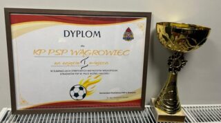Drużyna Komendy Powiatowej Państwowej Straży Pożarnej w Wągrowcu zajęła I miejsce w eliminacjach strefowych Mistrzostw Wielkopolski Strażaków PSP w Piłce Nożnej Halowej.