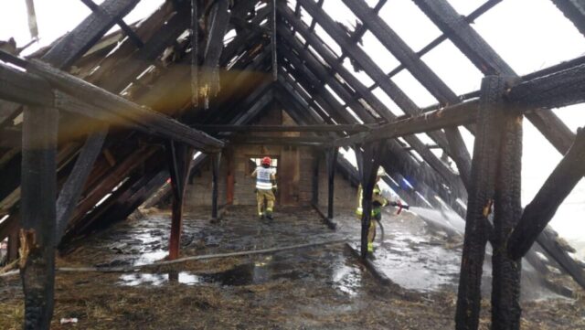 – Po przybyciu na miejsce pierwszych zastępów ustalono, że pożar wystąpił na poddaszu budynku inwentarskiego, w którym składowane były bele słomy i siana. W chwili zdarzenia w budynku znajdowały się zwierzęta inwentarskie. Nie było osób poszkodowanych – wyjaśniają strażacy.