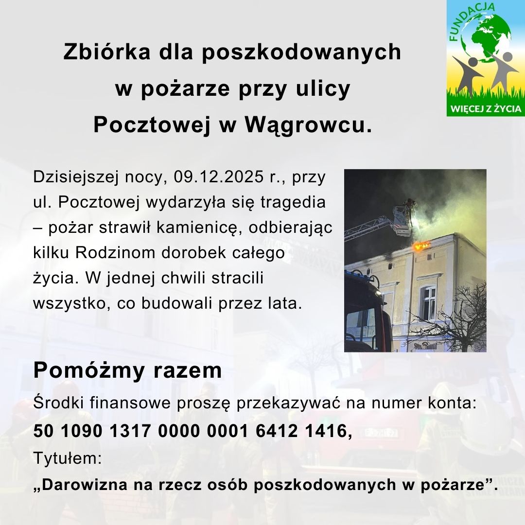 – Drodzy wągrowczanie, dzisiejszej nocy przy ul. Pocztowej wydarzyła się tragedia – pożar strawił kamienicę, odbierając kilku Rodzinom dorobek całego życia. W jednej chwili stracili wszystko, co budowali przez lata – czytamy na oficjalnej stronie Wągrowca.