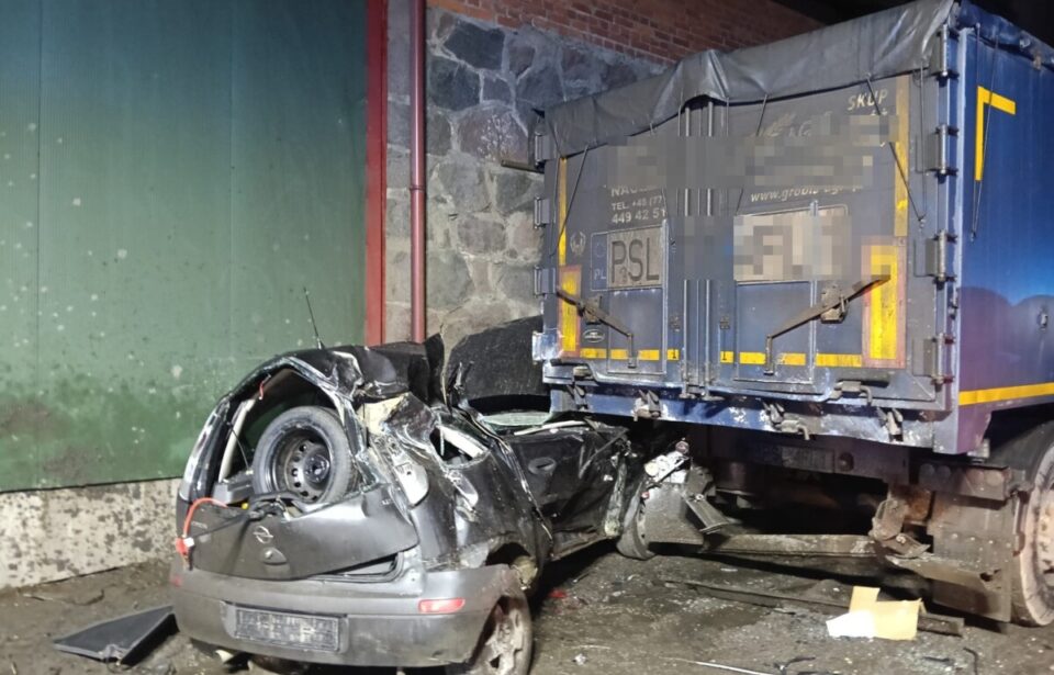 – Kierujący samochodem opel corsa po wyjechaniu z łuku drogi, zjechał na pobocze, gdzie znajduje się parking dla samochodów ciężarowych czekających na wjazd do zakładu i uderzył w tył naczepy parkującego pojazdu ciężarowego – wyjaśnia wągrowiecka policja.