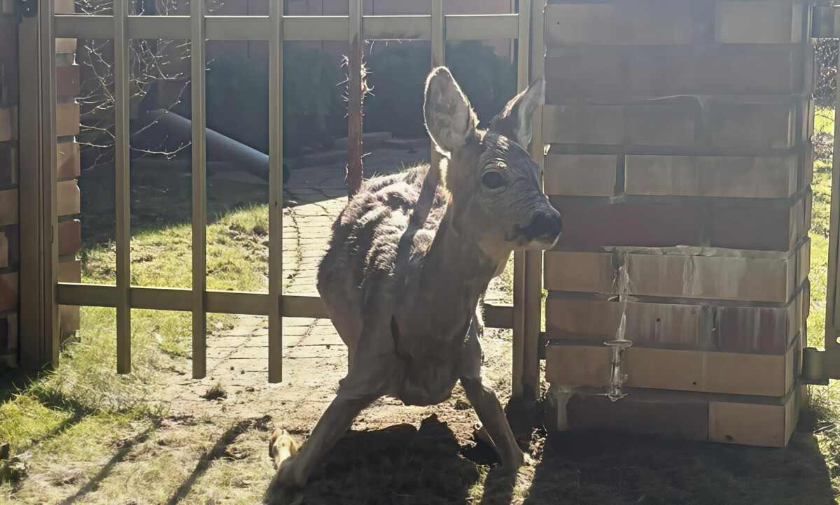Okazało się, że w jednym z ogrodzeń utknęła młoda sarna, która nie była w stanie samodzielnie się stamtąd uwolnić.
