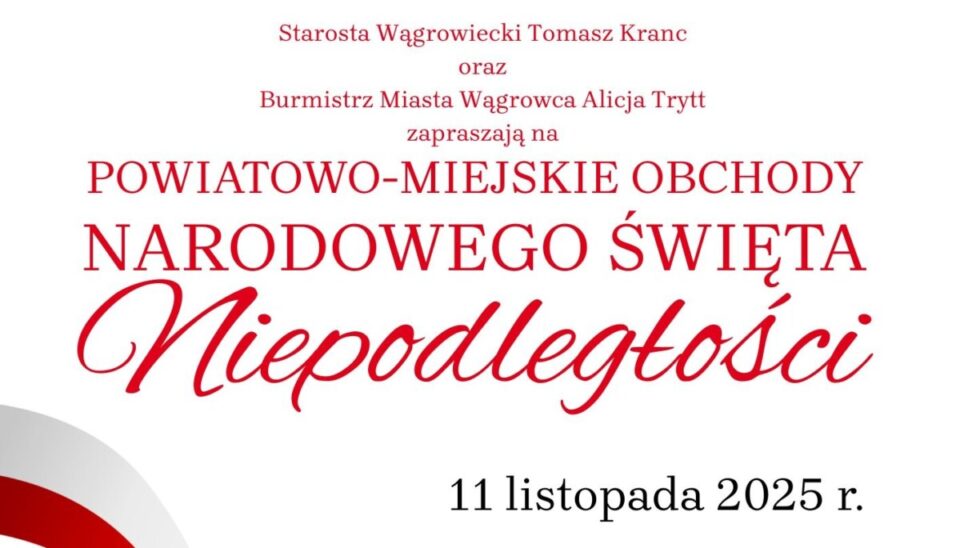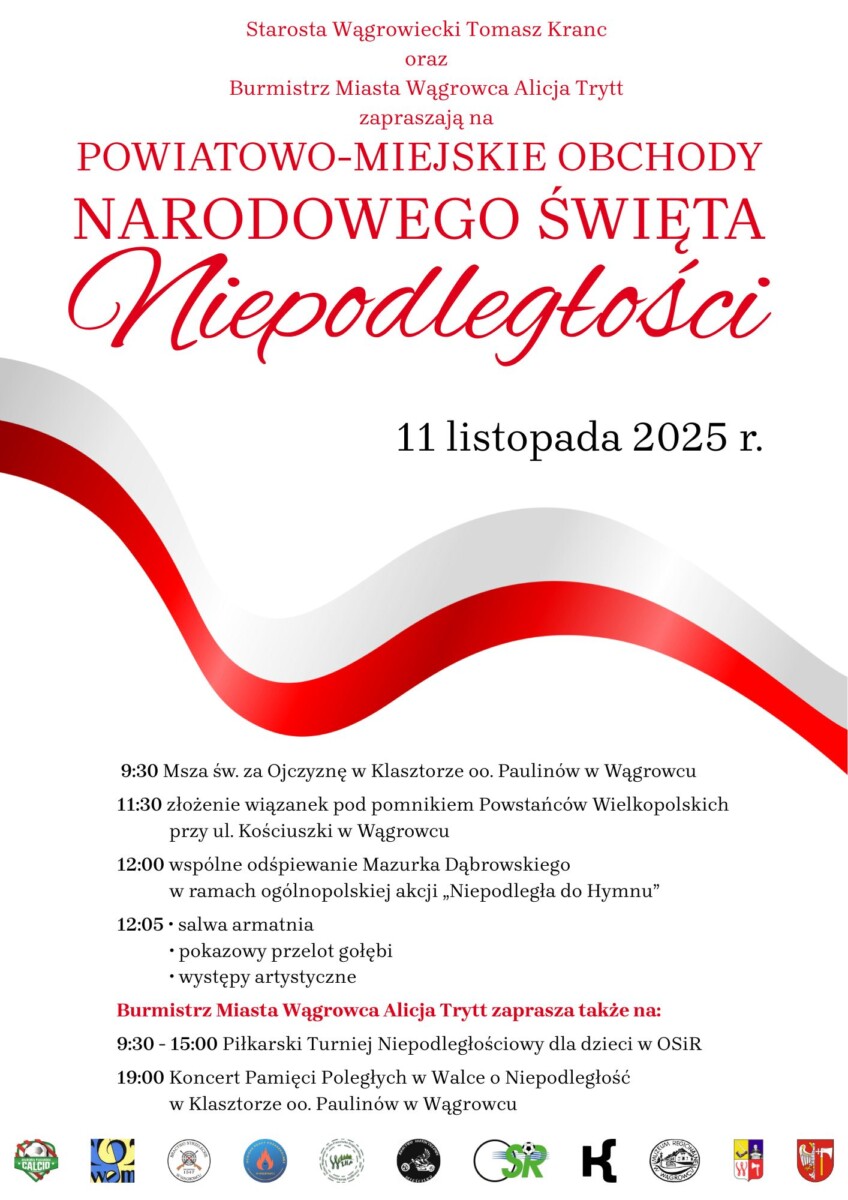 Starosta Wągrowiecki Tomasz Kranc oraz Burmistrz Miasta Wągrowca Alicja Trytt zapraszają na Powiatowo-Miejskie Obchody Narodowego Święta Niepodległości w Wągrowcu.