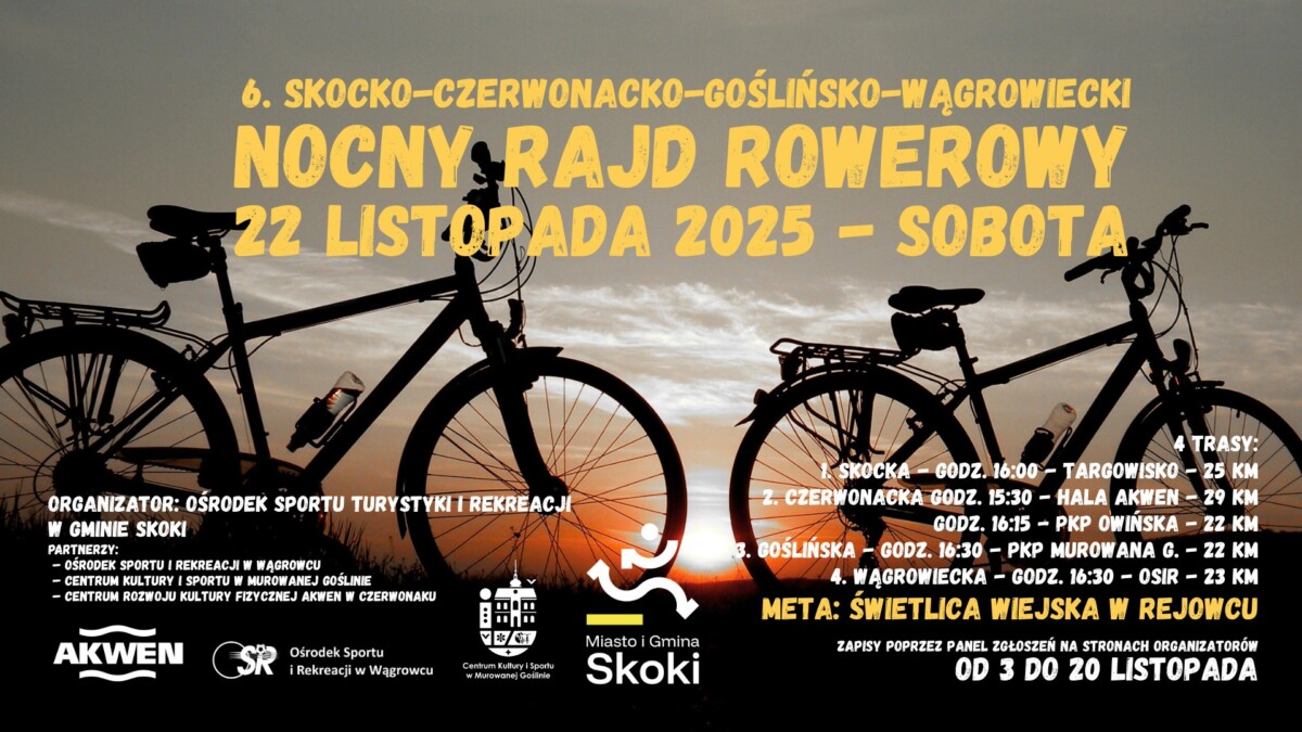 Dokładnie za miesiąc, 22 listopada, odbędzie 6. Skocko-Czerwonacko-Goślińsko-Wągrowiecki Promienisty Nocny Rajd Rowerowy.