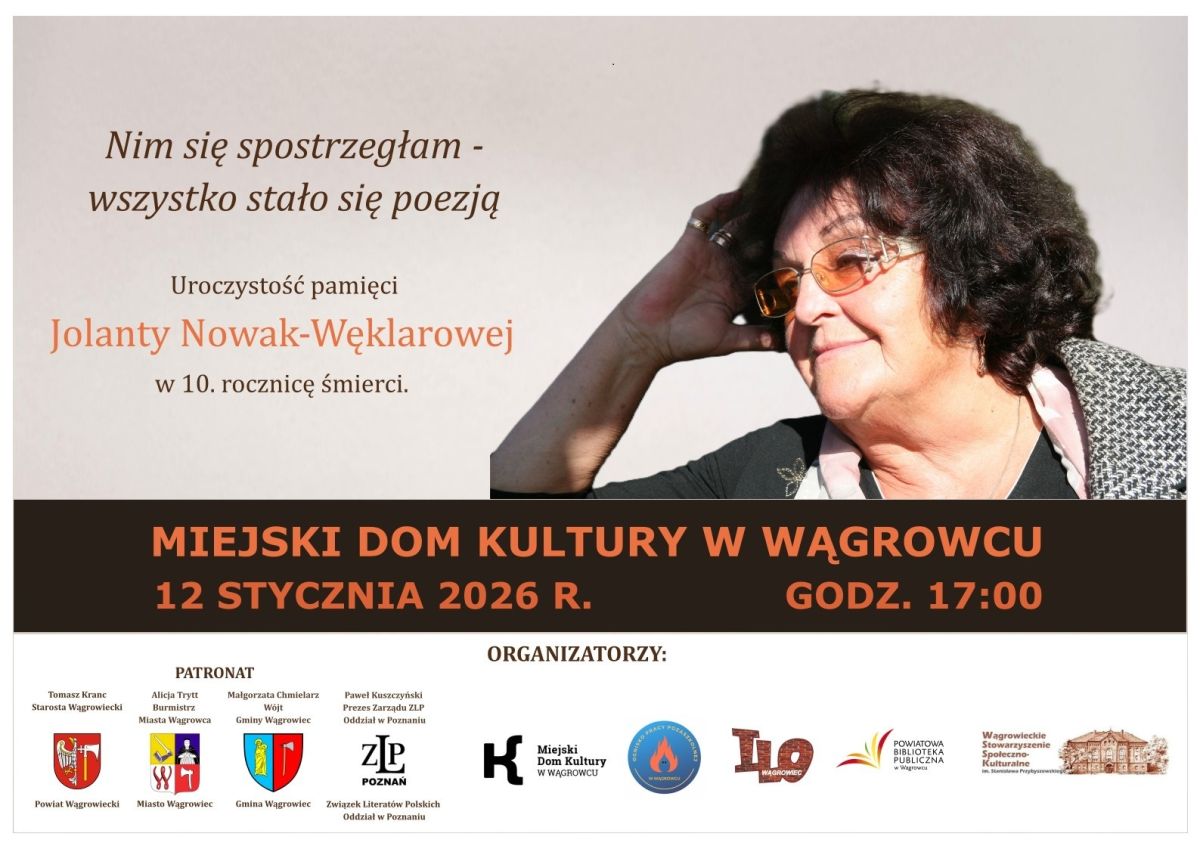 Na tę uroczystość zapraszają starosta wągrowiecki Tomasz Kranc, burmistrz Wągrowca Alicja Trytt oraz wójt gminy Wągrowiec Małgorzata Chmielarz. Dodajmy, że inicjatorką i promotorką wydarzenia jest wiceprzewodnicząca rady powiatu wągrowieckiego, poetka Małgorzata Osuch.