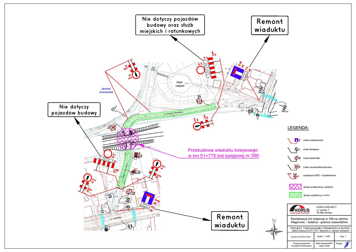 Przejazd i przejście dla pieszych pod wiaduktem kolejowym, znajdujące się w ulicy prowadzącej do promenady nad Jeziorem Durowskim, będą od 28 października – w związku z pracami remontowymi linii kolejowej nr 356 na odcinku Wągrowiec – Gołańcz – granica województwa – zamknięte dla użytkowników. Rozbiórka wiaduktu i budowa nowego obiektu potrwają do 31 lipca 2026 roku, w związku z czym na odcinku od ulicy Kościuszki do ulicy Cysterskiej zostaje wprowadzona zmiana organizacji ruchu.