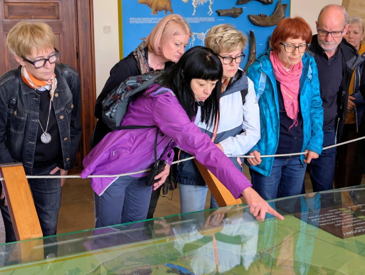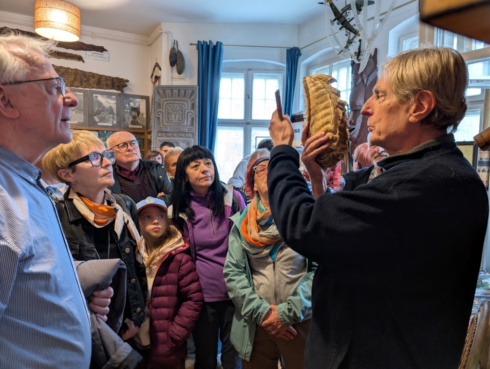 Zanim turyści wybrali się na kilkukilometrowy spacer przez WPN, zajrzeli jeszcze do mieszczącego się w Puszczykówku Muzeum Arkadego Fiedlera. Tam przyjął ich Marek Fiedler, który opowiedział w powstaniu muzeum, zbiorach i podróżach Fiedlerów do egzotycznych miejsc.