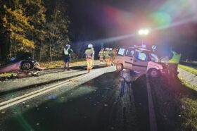 Do tego zdarzenia doszło dzisiaj wieczorem pomiędzy Skokami a Sławą Wielkopolską. Czwartek, 30 października. Około godziny 20.00 na drodze wojewódzkiej 196, na odcinku pomiędzy Skokami a Sławą Wielkopolską doszło zderzenia dwóch samochodów osobowych. Wstępnie policjanci ustalili, że jadący od strony Poznania kierujący samochodem fiat, z nieznanych przyczyn zjechał na przeciwległy … Czytaj dalej Z OSTATNIEJ CHWILI: Czołowe zderzenie dwóch aut. POSZKODOWANI trafili do SZPITALI. Są utrudnienia [FOTO/FILM]