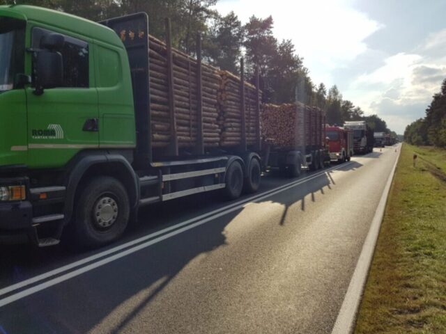 Droga jest tam zablokowana. Na miejscu jest pięć zastępów straży z JRG oraz OSP. Trwają działania.