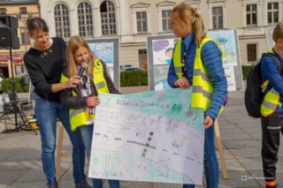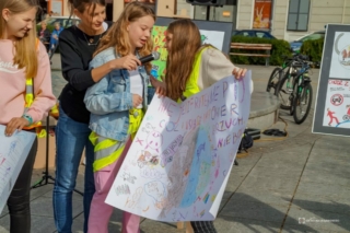 Następnie uczestnicy przejechali na rynek, na którym policjanci przeprowadzili pogadankę na temat bezpieczeństwa, a następnie wręczono nagrody zwycięzcom konkursu plastycznego (organizatorem konkursu był MDK w Wągrowcu).
