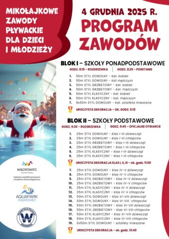 W wągrowieckim Aquaparku odbywają się dzisiaj tradycyjne Mikołajkowe Zawody Pływackie o Puchar Burmistrza Miasta Wągrowca.