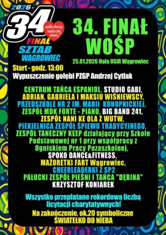 Tegoroczna, 34. edycja Wielkiej Orkiestry Świątecznej Pomocy odbywa się pod hasłem walki z chorobami układu pokarmowego u dzieci. Zebrane środki zostaną przeznaczone na zakup nowoczesnego sprzętu do diagnostyki i leczenia najmłodszych pacjentów. Wągrowiecki sztab przygotował bogaty program, który łączy aktywność sportową, występy artystyczne oraz tradycyjne licytacje.